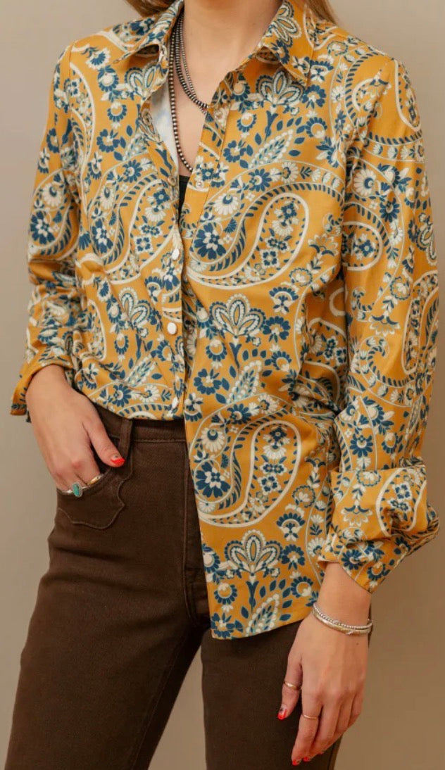 Bandana Honey Button Up - S is backordered and will ship as soon as it is back in stock.