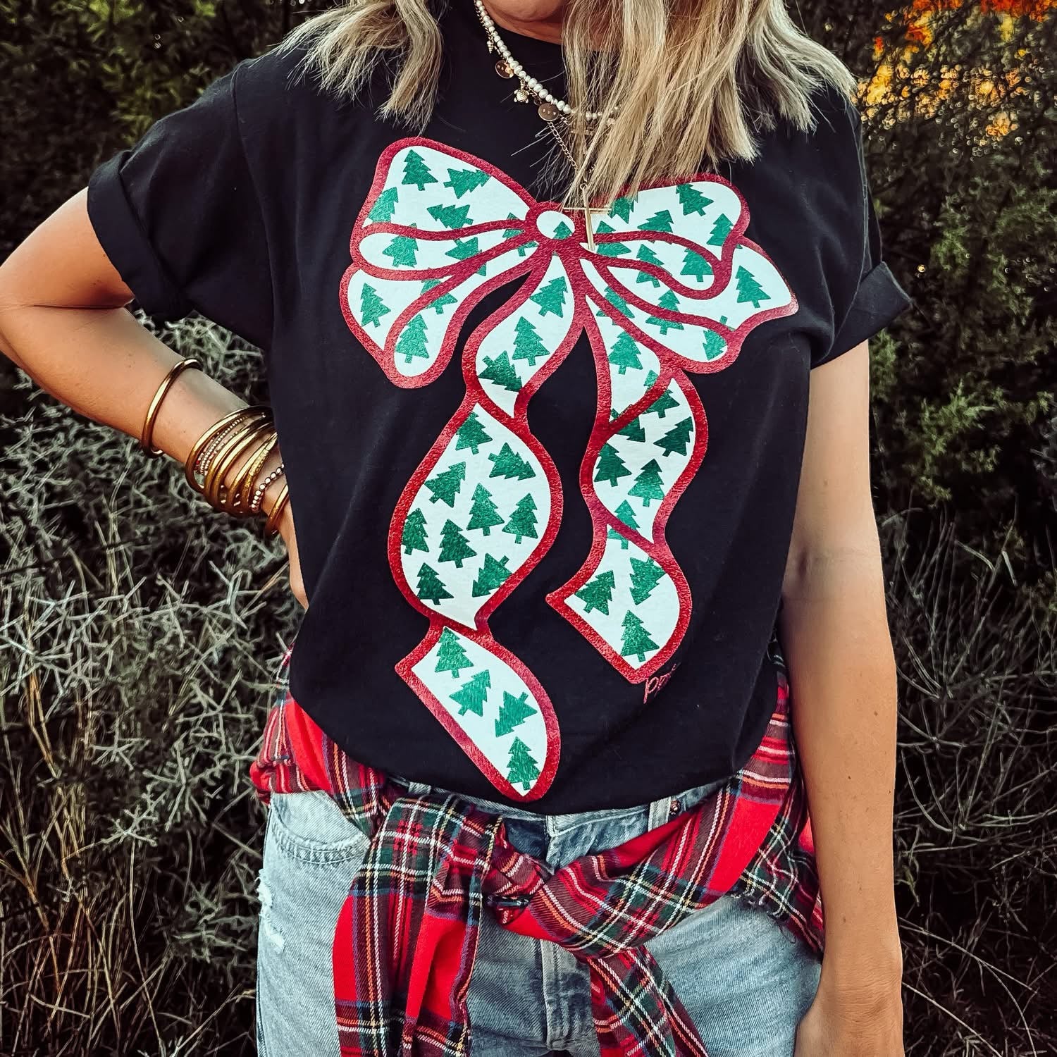 Glitter Bow with Tiny Trees Tee - S is backordered and will ship as soon as it is back in stock.