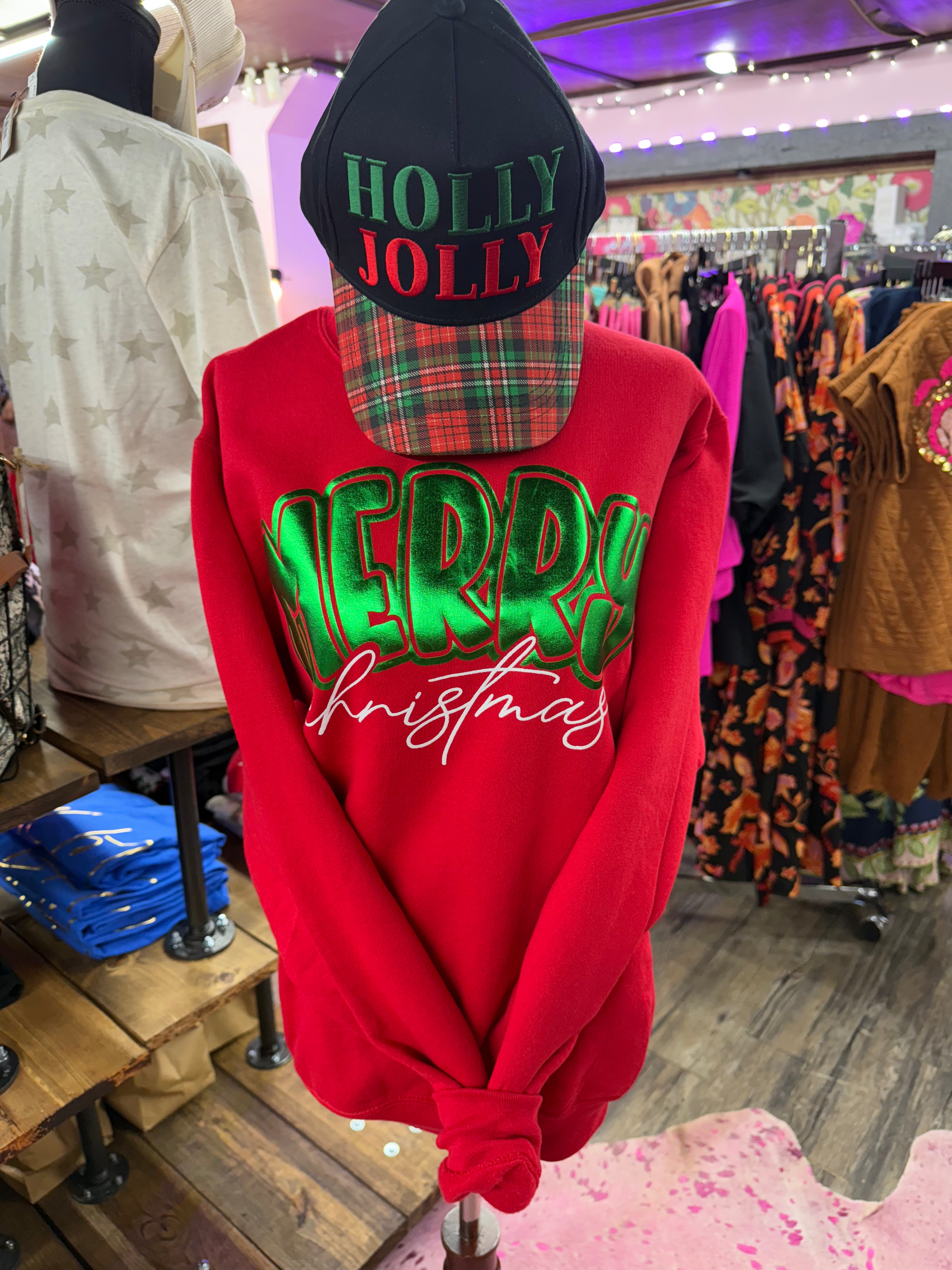 Merry Christmas Metallic Sweatshirt - S is backordered and will ship as soon as it is back in stock.