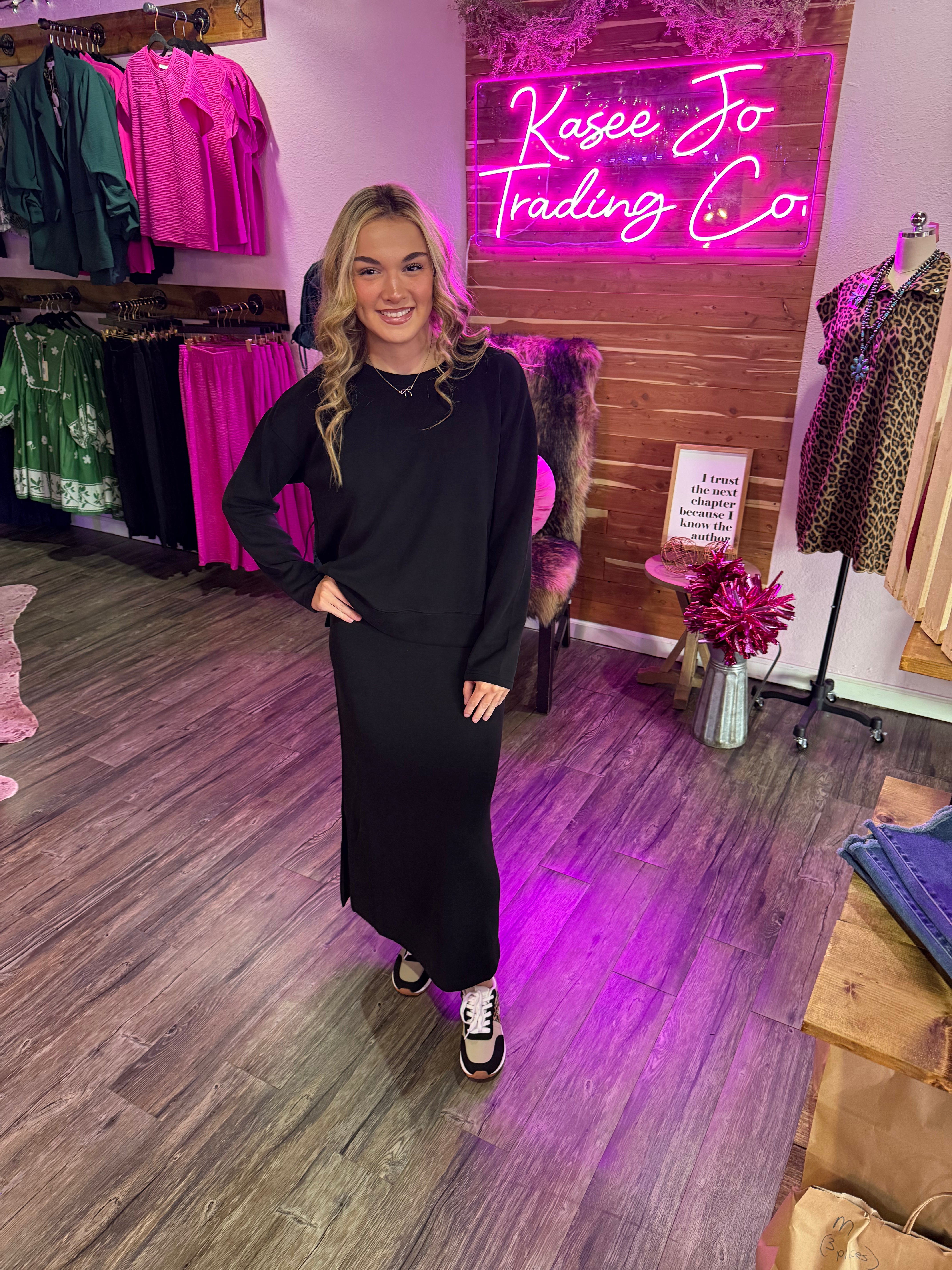 Modal Black 2fer Dress Set - M is backordered and will ship as soon as it is back in stock.