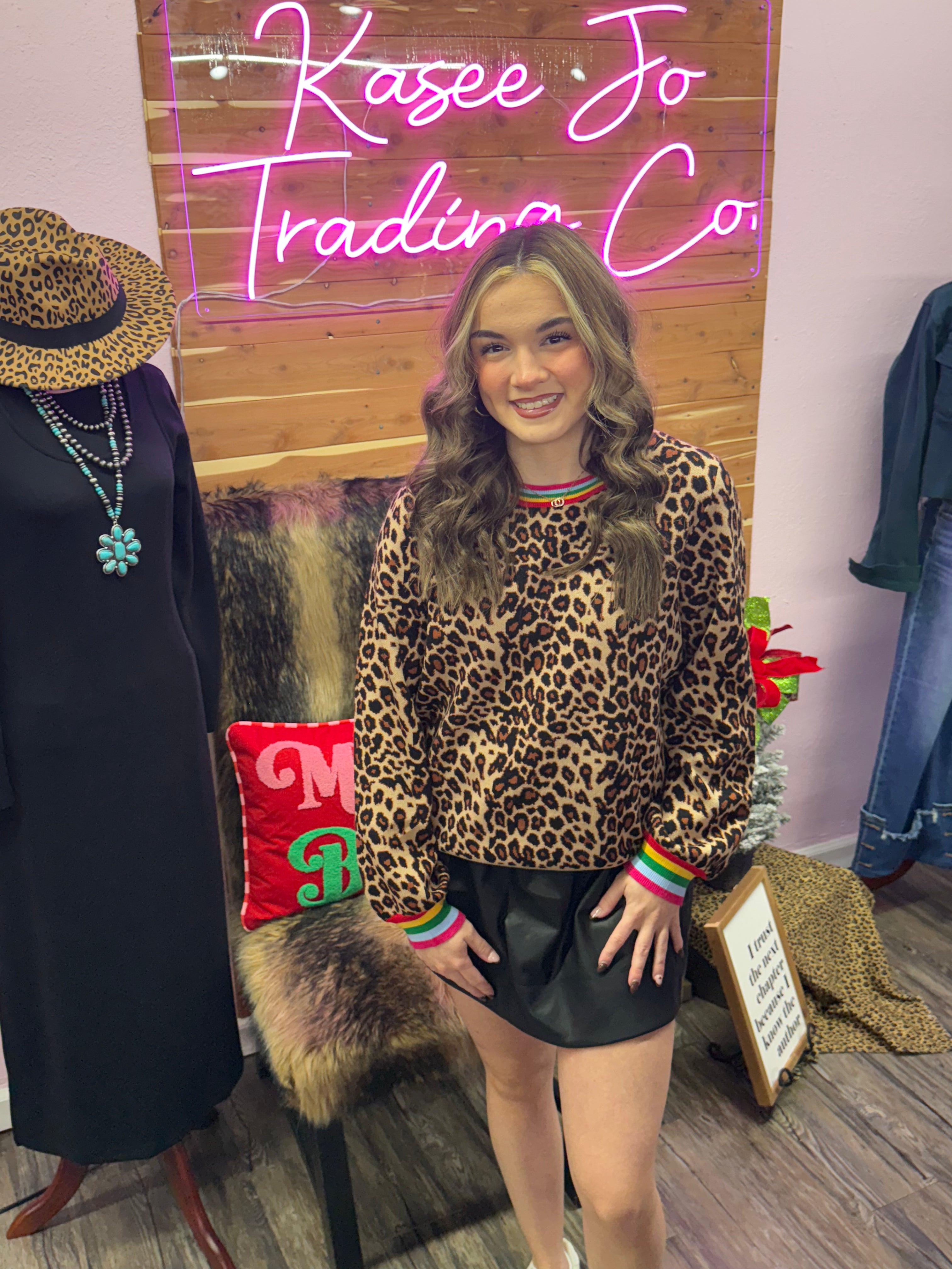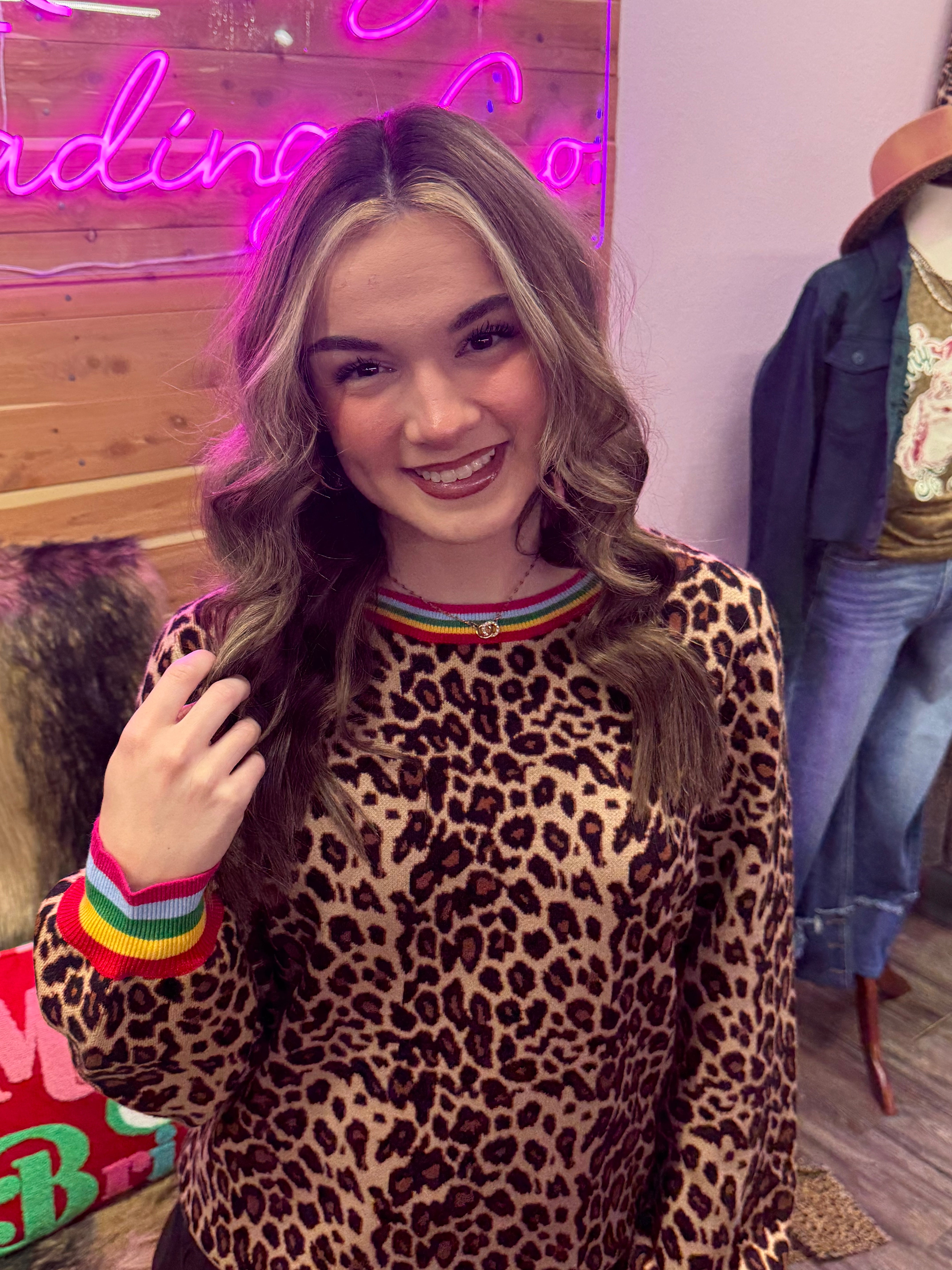 Multi Color Ringer Leopard Sweater - S is backordered and will ship as soon as it is back in stock.