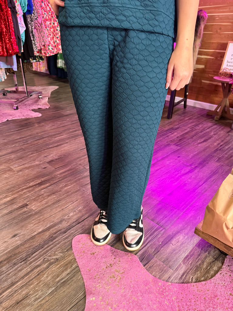 Timeless Teal Honey Comb Pant - S is backordered and will ship as soon as it is back in stock.